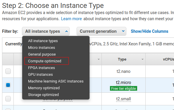 Filter by compute optimized.