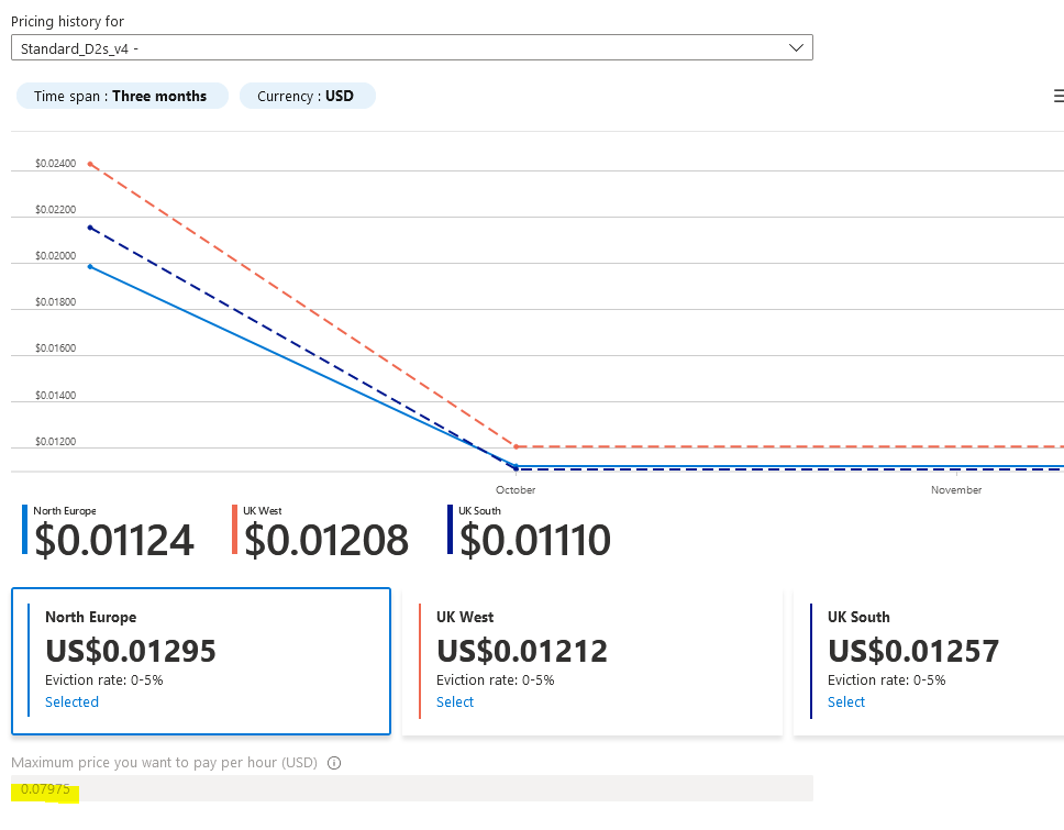Below you can see the price history of the VM over the last 3 months for North Europe and regions nearby.