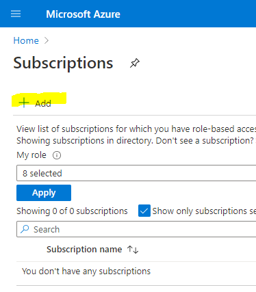 Then select "+ Add" to add a new subscription