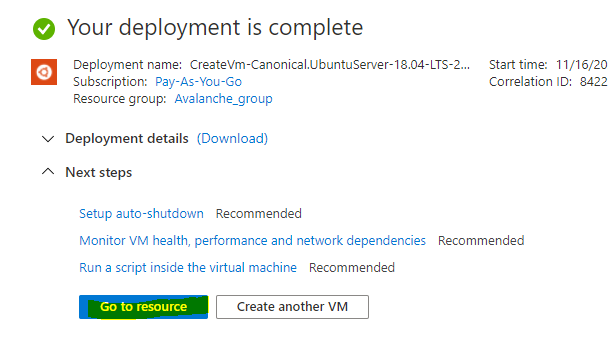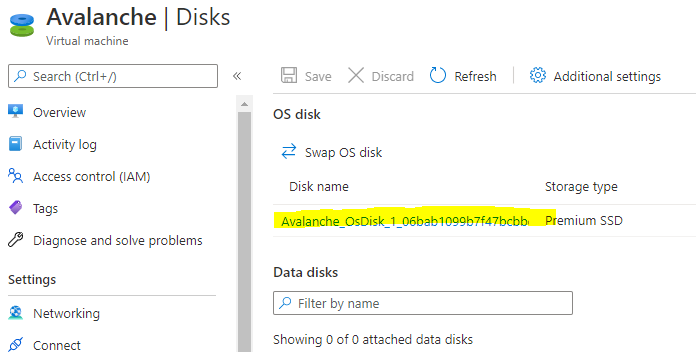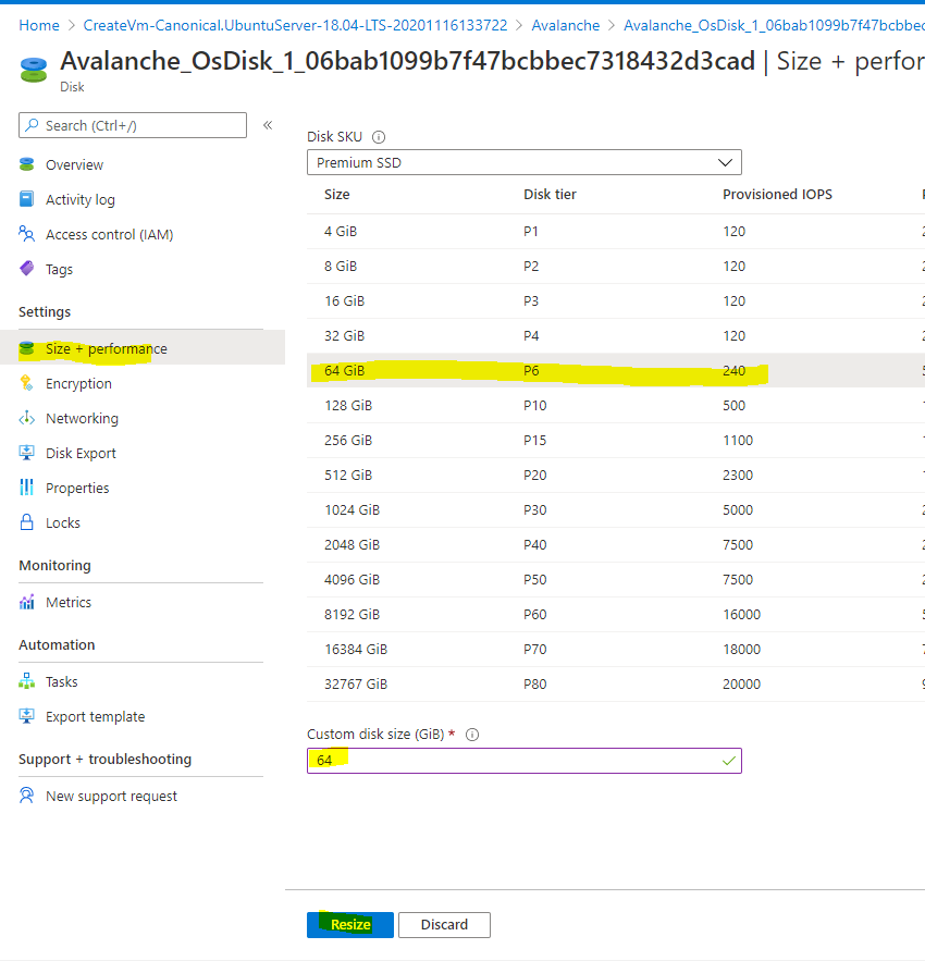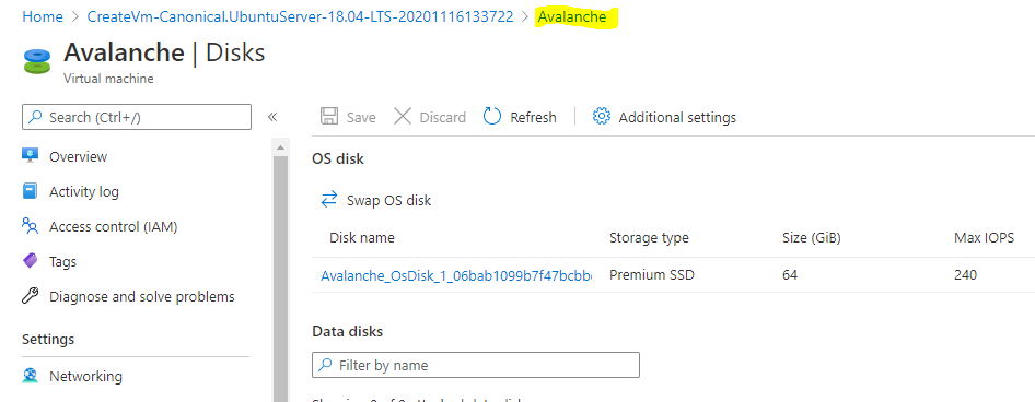 Doing this now will also extend the partition automatically within Ubuntu. To go back to the virtual machine overview page, select Avalanche in the navigation setting.