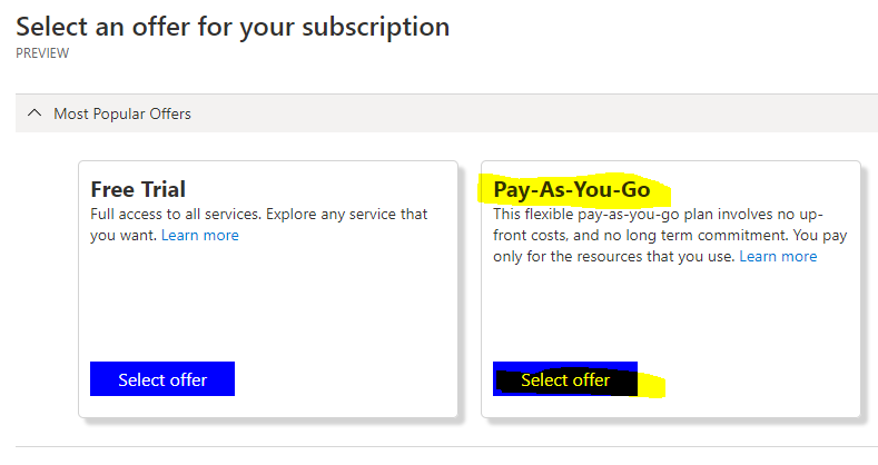 If you want to use Spot Instance VM Pricing (which will be considerably cheaper) you can't use a Free Trial account (and you will receive an error upon validation), so make sure to select Pay-As-You-Go.