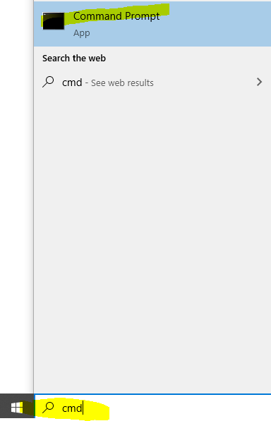 To log onto the Avalanche node, open command prompt by searching for cmd and selecting "Command Prompt" on your Windows 10 machine.