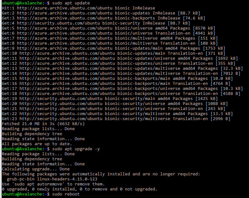 Now that we are on our node, it's a good idea to update it to the latest packages. To do this, run the following commands, one-at-a-time, in order:
